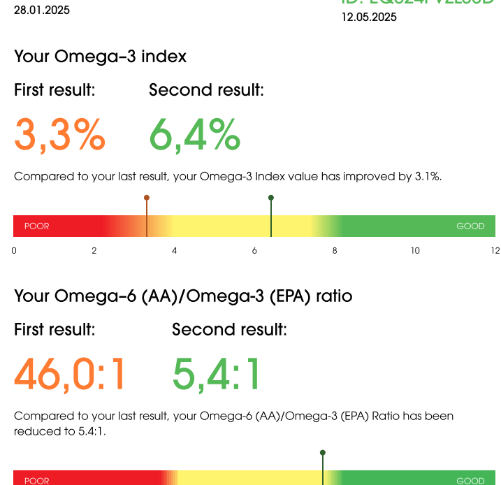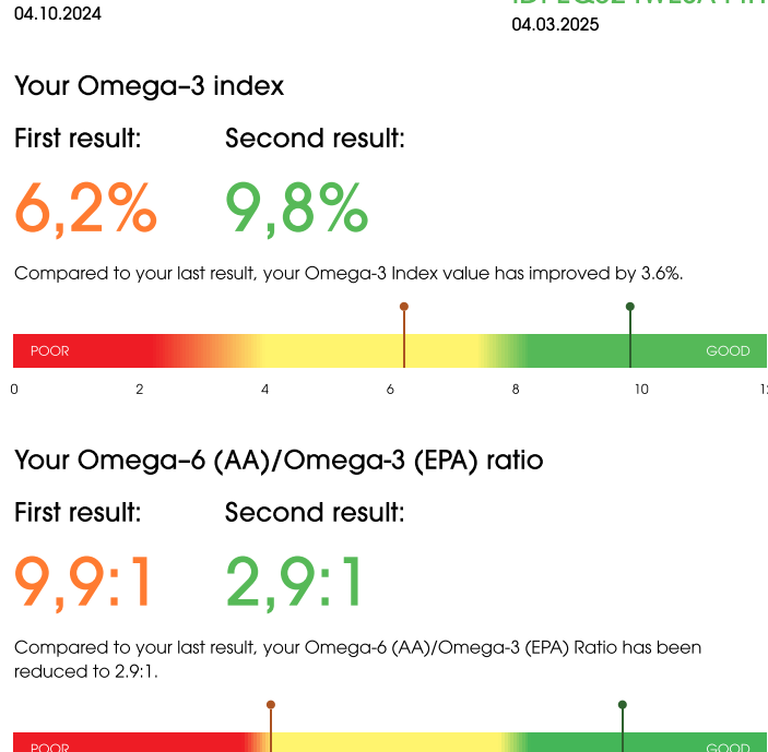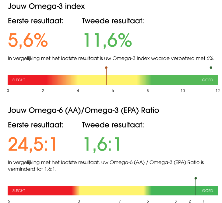 Iedereen is uniek. Klanten komen met heel verschillende achtergronden bij mij. Sommige gebruiken al supplementen, anderen passen hun voeding nauwelijks aan, en weer anderen beginnen helemaal opnieuw met hun leefstijl en voeding. In de praktijk zien we dat het afnemen van de test en daarmee inzicht krijgen in je omega-3 en omega-6 waarden vaak helpt om bewust te kiezen voor voeding en supplementen die passen bij jouw situatie.
